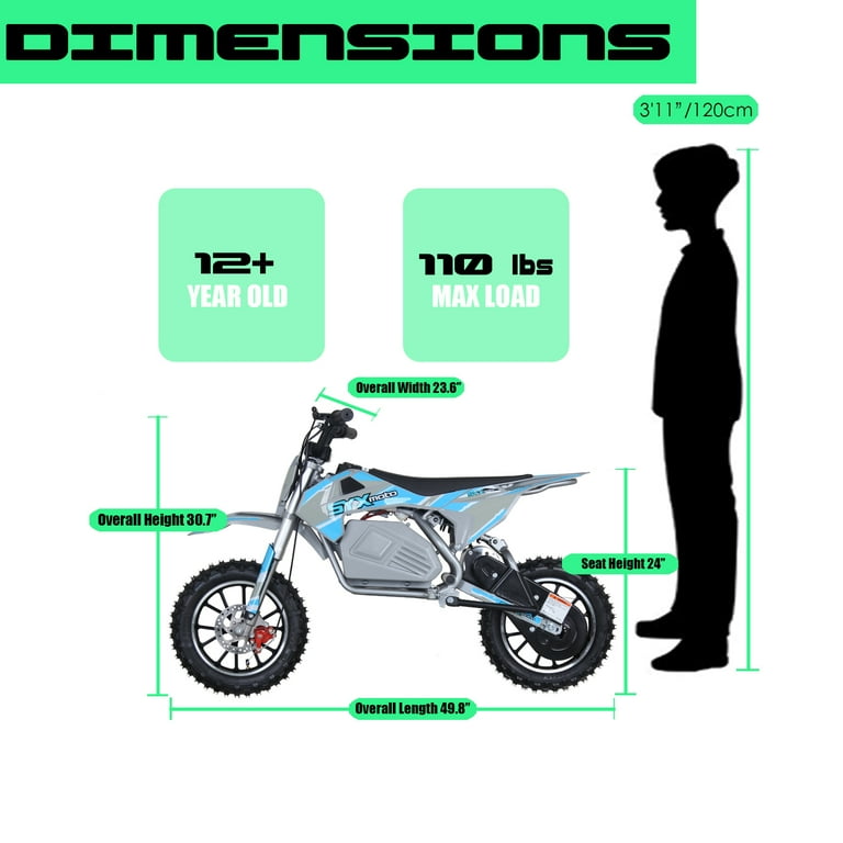 Syx Moto Kbe 500w 36v Electric Beginner Kids Mini Dirt Bike New Blue Grey Walmart Com